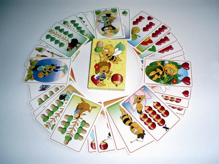 Dětské hrací karty na pohádkové motivy se zachováním symbolů (žaludy, zelené ...) a návodem k jedné z možných her - Prší. prečítať celé