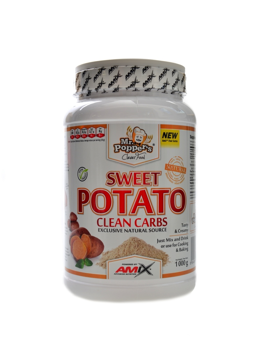 Přírodní prášek ze sladkých brambor (přírodní varianta) Mr. Popper‘s® Sweet Brambor Clean Carbs je speciální směs pro přípravu nápojů vyrobených speciálně ze sladkých bramborových prášků za studena, který je bohatý na komplexní uhlohydráty, vlákninu ze stravy s mírným obsahem jiných mikroživin.