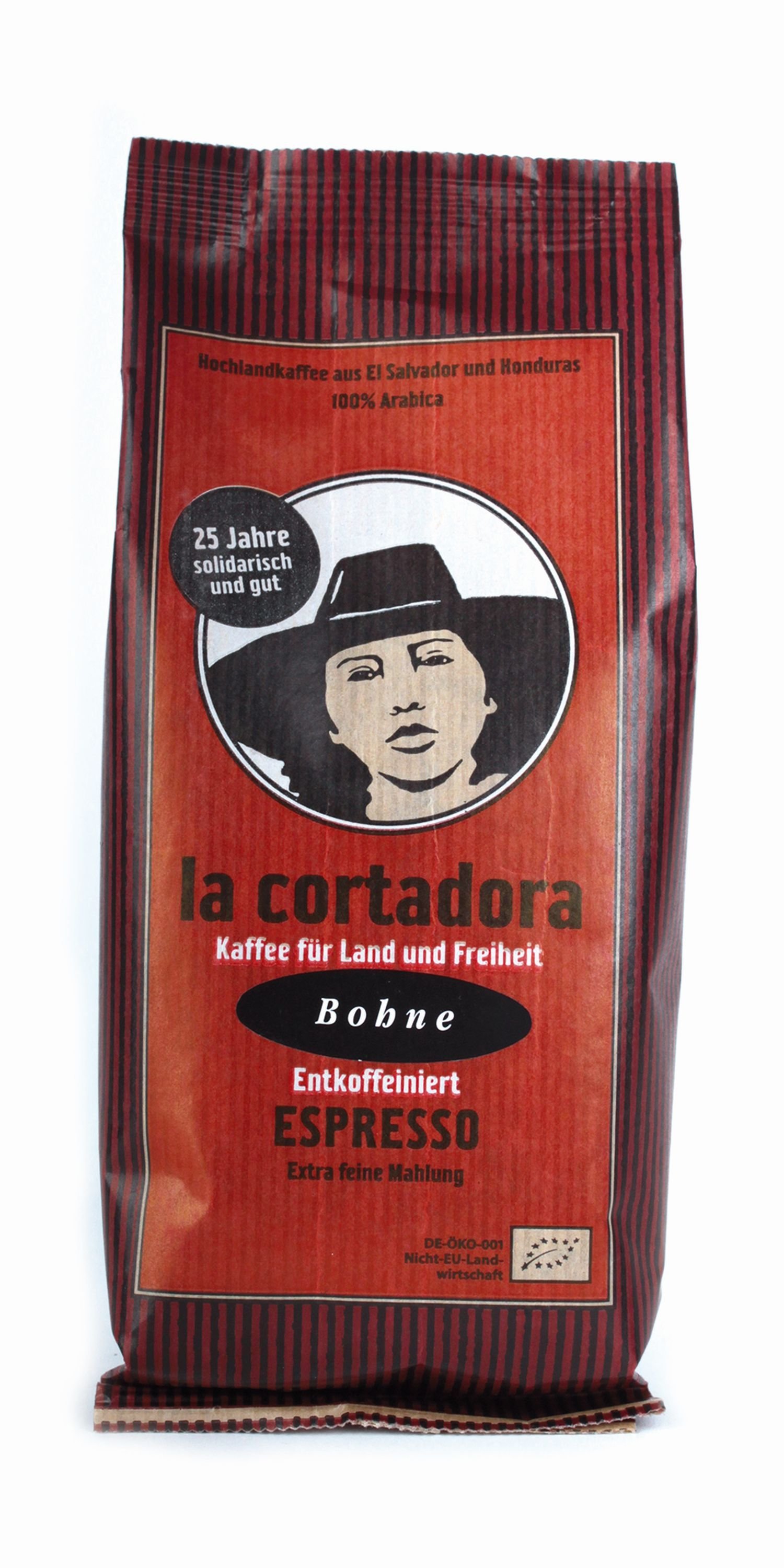 Bio zrnková káva La Cortadora bez kofeinu.