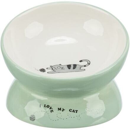 Táto miska je navrhnutá tak, aby mala vaša mačka ľahký prístup k jedlu či vode. Veselý motív mačky v kombinácii s príjemnou farbou šalvie a bielej dodáva miske osobitý vzhľad a oživí akékoľvek prostredie, kde bude umiestnená. Vyrobená z kvalitnej keramiky, ktorá je odolná a ľahko sa čistí, táto miska splní požiadavky na funkčnosť i dizajn.