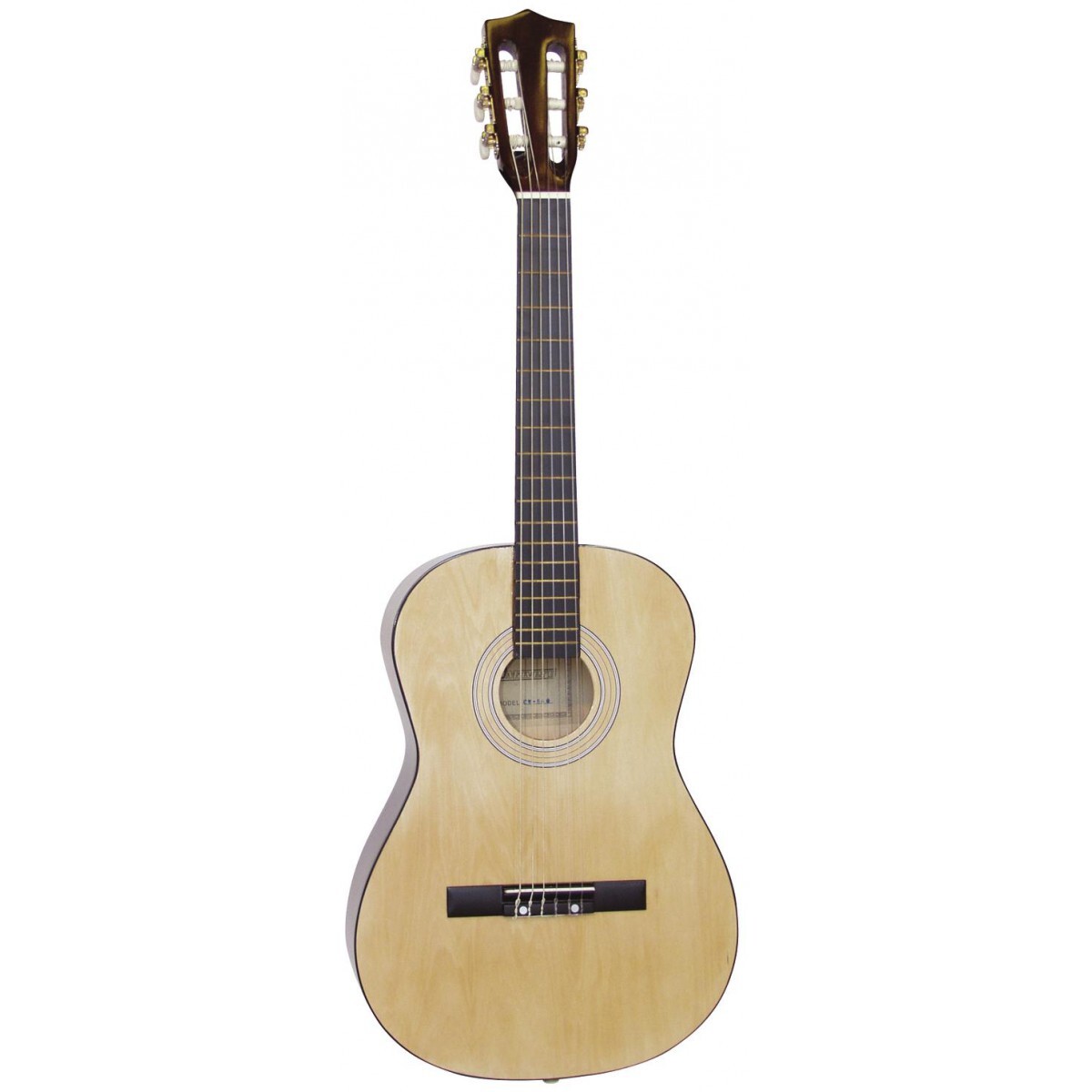 Klasická 3/4 kytara. Vrchní deska lípa, spodní deska a luby lípa, krk gaboon (okoumé), hmatník blackwood, menzura 580 mm, mechanika klasická, niklovaná. Barva přírodní lesklá.