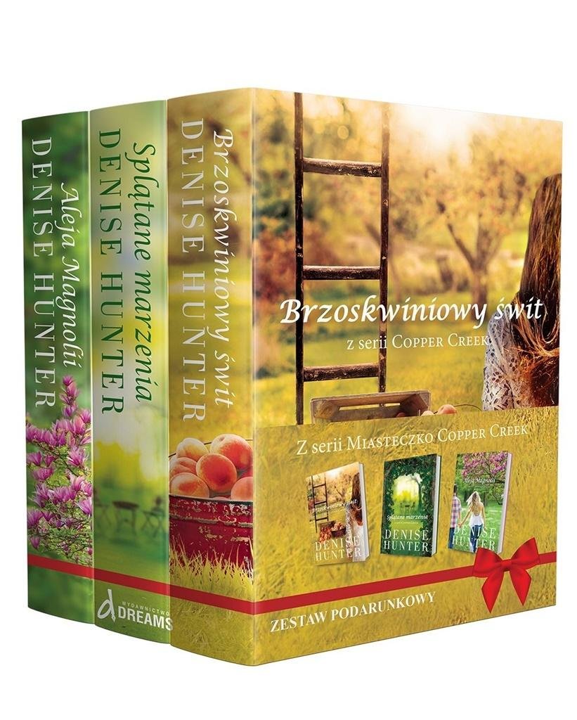 Denise Hunter, autorka kilku zekranizowanych powieści, tym razem zabiera czytelników do malowniczego Copper Creek. Jej bohaterowie są wyraziści, mierzą się z realnymi problemami i skutkami swoich wyborów, a przy tym pamiętają, jak ważna jest rodzina i prawdziwa przyjaźń. Pakiet zawiera powieści: Brzoskwiniowy świt, Splątane marzenia i Aleja Magnolii.