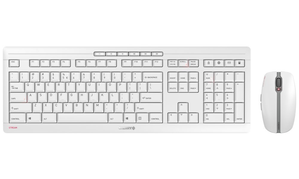 CHERRY set klávesnice a myši STREAM DESKTOP RECHARGE/ bezdrátová/ USB/ dobíjecí / bledě šedá