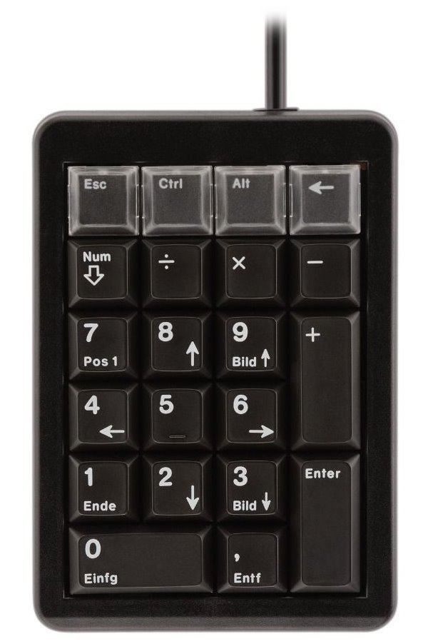 CHERRY G84-4700Externí numerická klávesnice pro rychlé a pohodlné zadávání číselných údajů do počítače či notebooku. Připojení k počítači je realizováno skrze 1,75 m dlouhý kabel zakončený USB konektorem. ZÁKLADNÍ SPECIFIKACE Typ zařízení: numerická klávesniceRozhraní: USBRozměry: 132 x 90 x 36...
