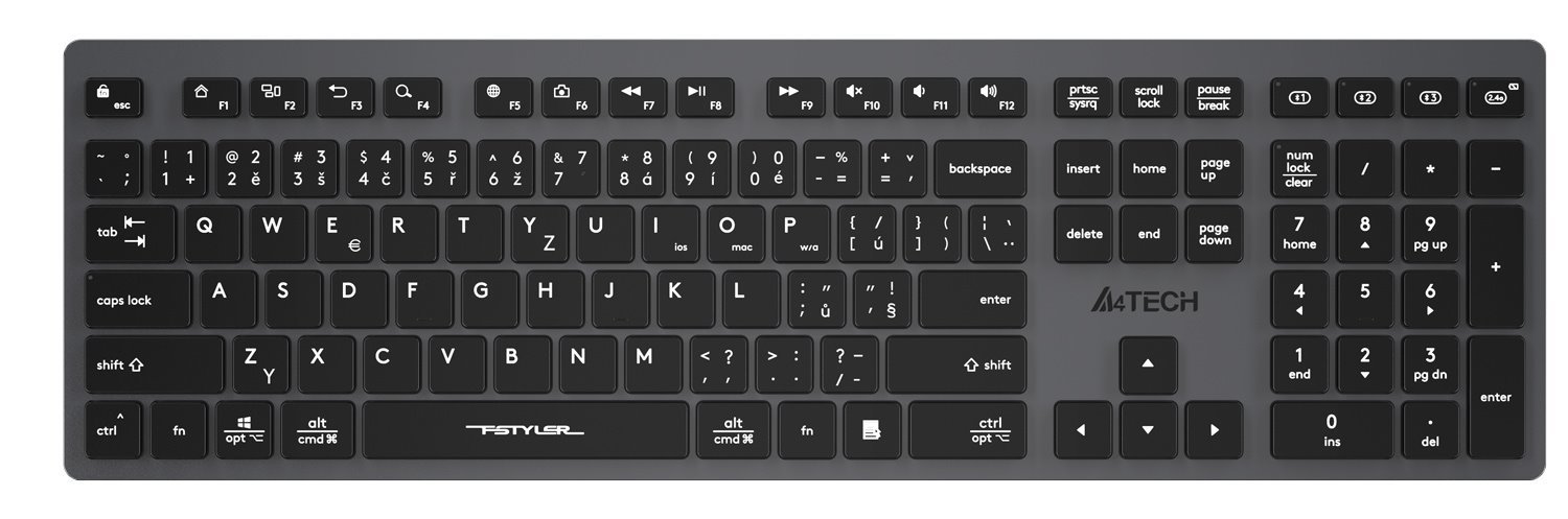 A4tech FBX50C, bezdrátová kancelářská klávesnice, šedá
