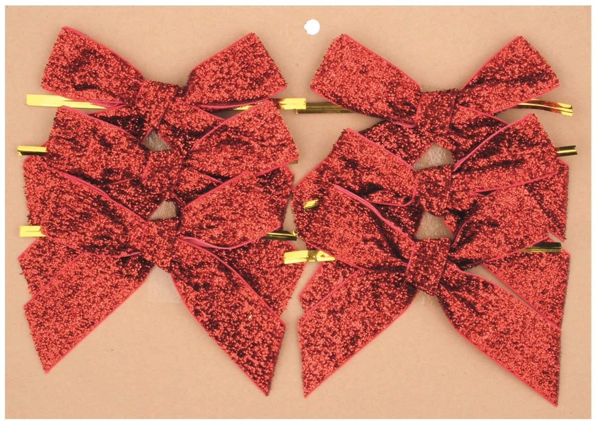 Mašle červená třpytivá 10 cm, 6 ks