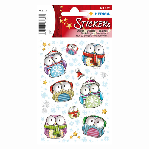 Vánoční etikety Magic - sovy v zimě, pohyblivé oči. prečítať celé