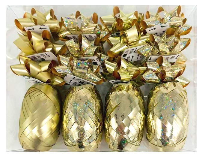 Sada na balení dárků zlatá, rozeta 5 x 2 x 5 cm 12 ks, stuha 0,5 cm x 10 m 4 ks