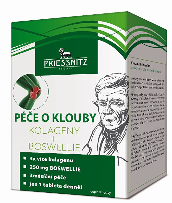 PRIESSNITZ® PÉČE O KLOUBY, přispívá díky obsahu boswellie k podpoře hybnosti a pružnosti kloubů, díky vitaminu C k normální tvorbě kolagenu, pro normální funkci chrupavek, a díky vitaminům K a D k udržení normálního stavu kostí. Dále je péče obohacena o tři, zákazníky žádané, typy kolagenů. Kromě...