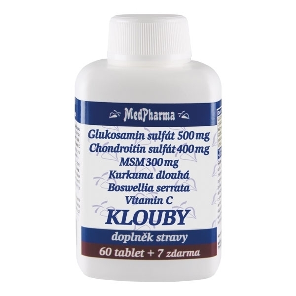 Produkt Klouby obsahuje glukosamin sulfát a chondroitin sulfát, což jsou tělu vlastní látky, které jsou jednou z hlavních složek kloubních chrupavek, pojivové tkáně, která je součástí pohybového ústrojí. Vitamín C přispívá k normální tvorbě kolagenu pro normální funkci kostí a kloubních chrupavek.