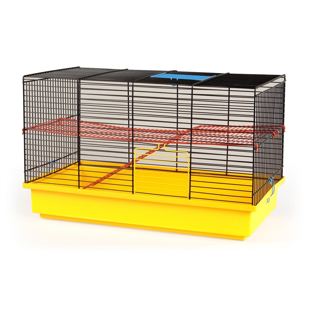 Klec s vybavením pro drobné hlodavce.„Abyste předešli poškození klece okousáním, pro potkany, pískomily a osmáky, jejichž přirozeným naturelem je průzkumnictví a hledání únikových cest, doporučujeme klece s drátěnými prvky - ideálně klec Osmák, Osmák degu, které jsou navíc vybavena drátěným...