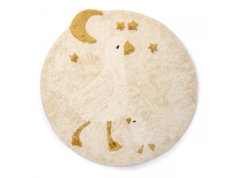 Kouzelný kulatý koberec s motivem husy a housátka, měsíce a hvězdiček promění každý pokojíček v místo plné pohody a snů. Je hebký, hřejivý a ideální pro hraní, odpočinek nebo čtení pohádek.Skvělý pro hraní na zemi, odpočinek nebo jako měkký doplněk vedle postýlkyVyroben ze 100% organické bavlny,...