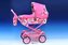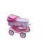 Moderní kočárek pro panenky s hlubokou vaničkou. Lehká kovová konstrukce je doplněna většími koly, které ulehčují jízdu s kočárkem. Hluboká vanička je kryta nánožníkem, rukojeť s možností výškového nastavení. Součástí je také košík a přebalovací taška. Rozměr vaničky 60 x 30 cm výška rukojeti max. 74 cm. Rozměry kočárku: v. 87 x š. 38 x d. 77 cm. Vhodný od 3 let.
