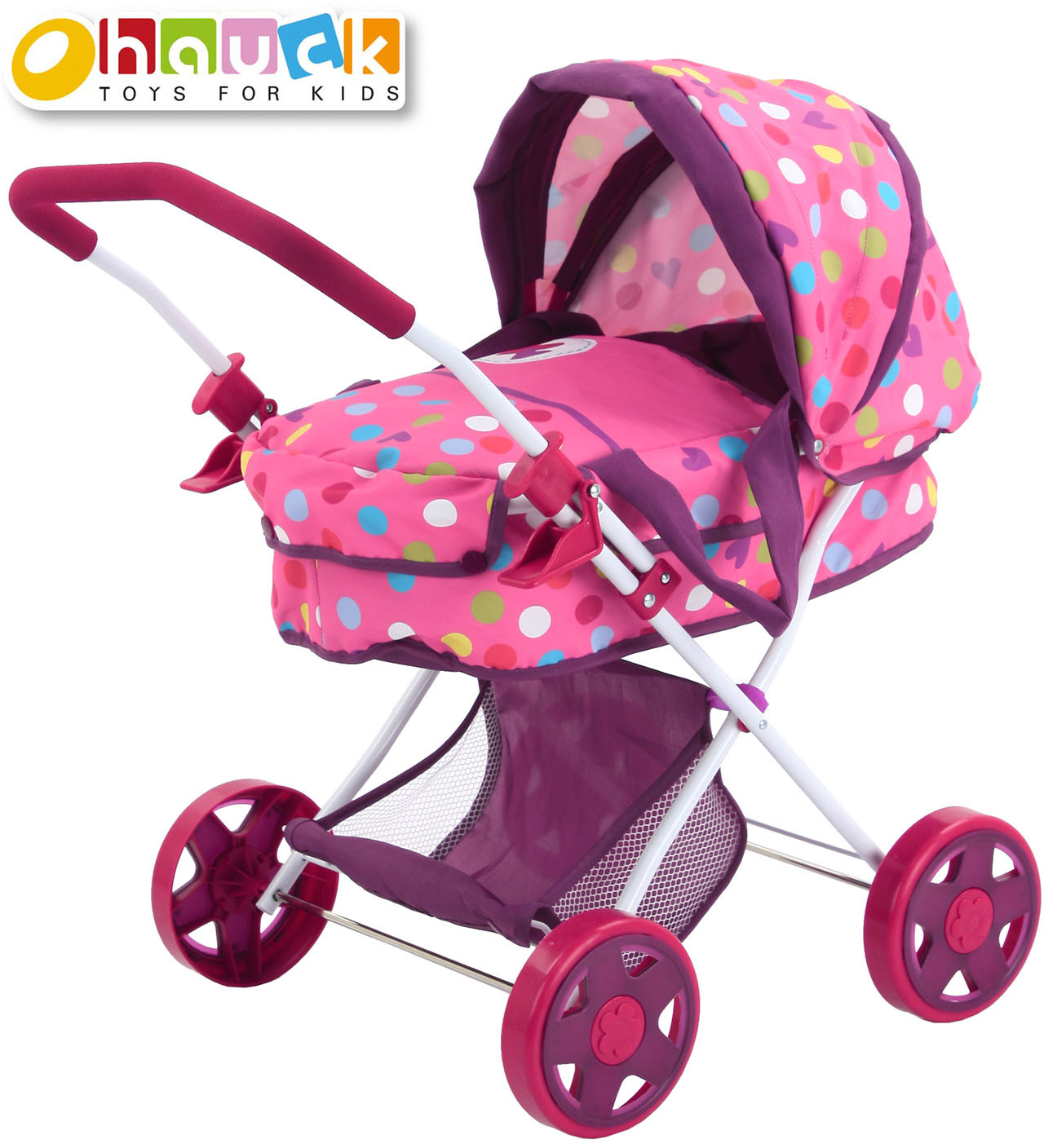 Dětský kočárek pro panenku s duhovým motivem. Hmotnost kočárku 1,3kg. Rozměry složeného kočárku 62x38x57,5 cm. Rozměr vnitřku kočárku 23x54 cm. Výška madla 57,5 cm (nepolohovatelné). Průměr koleček 13 cm. Ze spod kočárku je odkládací látkový košík, kočárek má stříšku. Vyjímatelný vnitřní vak. Určeno pro jednu panenku do velikosti 43 cm. Doporučený věk 3+