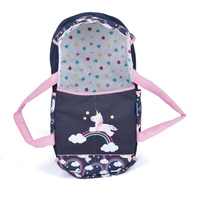 Kočárek pro panenky, jednorožec. Hmotnost kočárku je 1,8kg, rozložený kočárek má velikost 59x38,5x63cm. Rozměry složeného kočárku 68x38,5x16cm. Výška madla 59cm (nepolohovatelné). Průměr koleček 16,5cm. Kočárek má spodní úložný prostor, stříšku nad panenku. Do kočárku se vejde panenka do velikosti 43 cm (dodáváno bez panenky). Doporučený věk 3+.