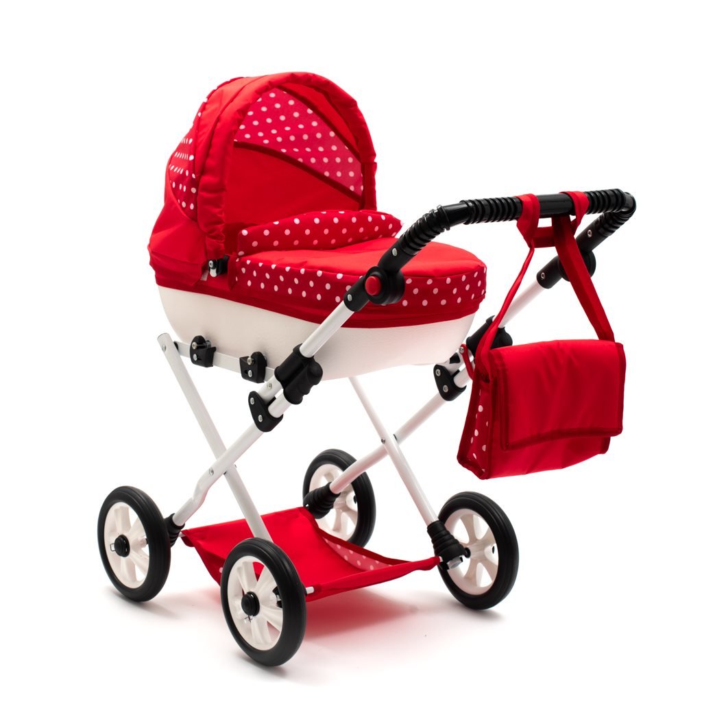Dětský kočárek pro panenky New Baby COMFORT červený s puntíky