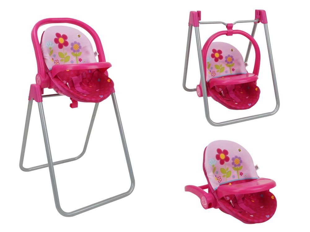 Sada 509 Crew 3v1 Feed Swing. Perfektní vše v jednom sada panenky Houpejte se, spi, jez a jdi. Může to být houpačka, autosedčka nebo vysoká stolička. Promění se na vysokou židličku pro zabavné krmení. Použijte funkci autosedačky jako nosič pro panenky nebo židli na krmení. Pro panenky do velikosti 60cm.