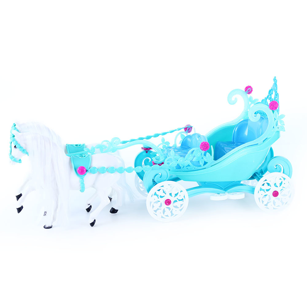 Dva koníci s dlouhou bílou hřívou jsou zapřažení za krásný pohádkový kočár, ve kterém můžeš vozit své panenky. Pořiď si tuto báječnou hračku a vyjeď se svými panenkami na okouzlující výlet! prečítať celé