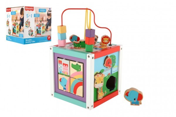 Edukačná kocka 5v1 drevo labyrint v krabici 21x21x21cm 18m+