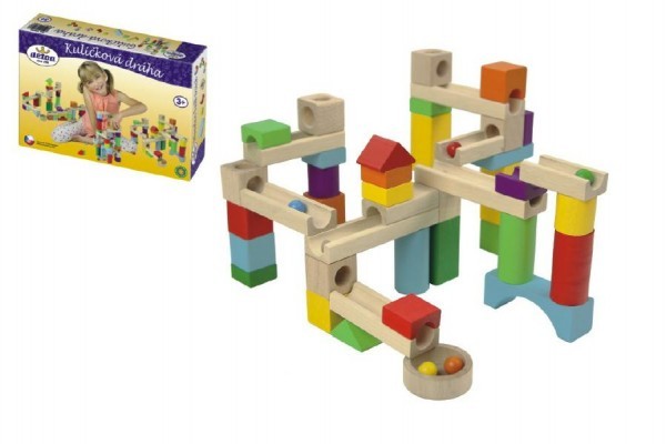 Guľôčková dráha drevo 58ks v krabici 30x20x6cm