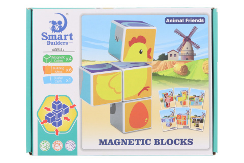 Plastové magnetické kostky s obrázky zvířátek. Jedna kostka o velikosti cca 4 x 4 x 4 cm. Balení obsahuje 4 kostky, ze kterých lze sestavit 6 druhů zvířátek. Rozměry balení cca 24,5 x 19 x 6,5 cm. Věk 3+ prečítať celé