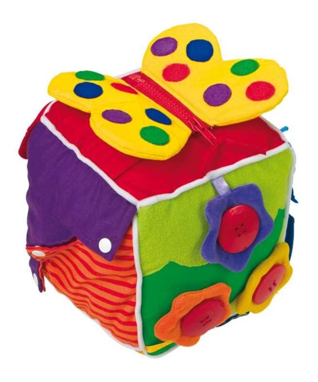 Plyšová kostka s různými zapínáními pro motorická cvičení dětských prstů. Každý typ zapínámí se nachází na jiné straně kostky - šněrování, knoflíky, na zip, na patentky, na suchý zip a pomocí nylonových tkaniček.Německá firma Legler zaměřená na výrobu kvalitních dřevěných hraček od roku 1996....