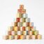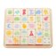 Velké dřevěné kostky s abecedou a čísly. Na jednotlivých stranách jsou velká a malá písmena abecedy, číslice, obrázky vztahující se k písmenům a číslicím a tvary k vytvoření obrázků z kostek. Spodní deska s vzorem abecedy pro praktické uložení. Vhodná velikost kostek pro nejmenší děti.