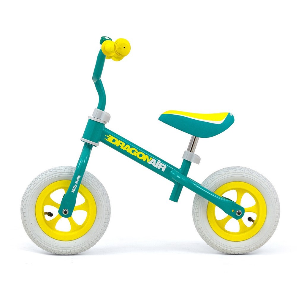Dětské odrážedlo-kolo Milly Mally DRAGON AIR je ideální, když se dítě učí udržet rovnováhu. Díky širokým nafukovacím gumovým pneumatikám z odolného materiálu zabezpečí stabilitu a bezpečnost na různých površích. Nastavitelné řídítka a sedlo zabezpečí, že kolo "poroste" s malým cyklistou....