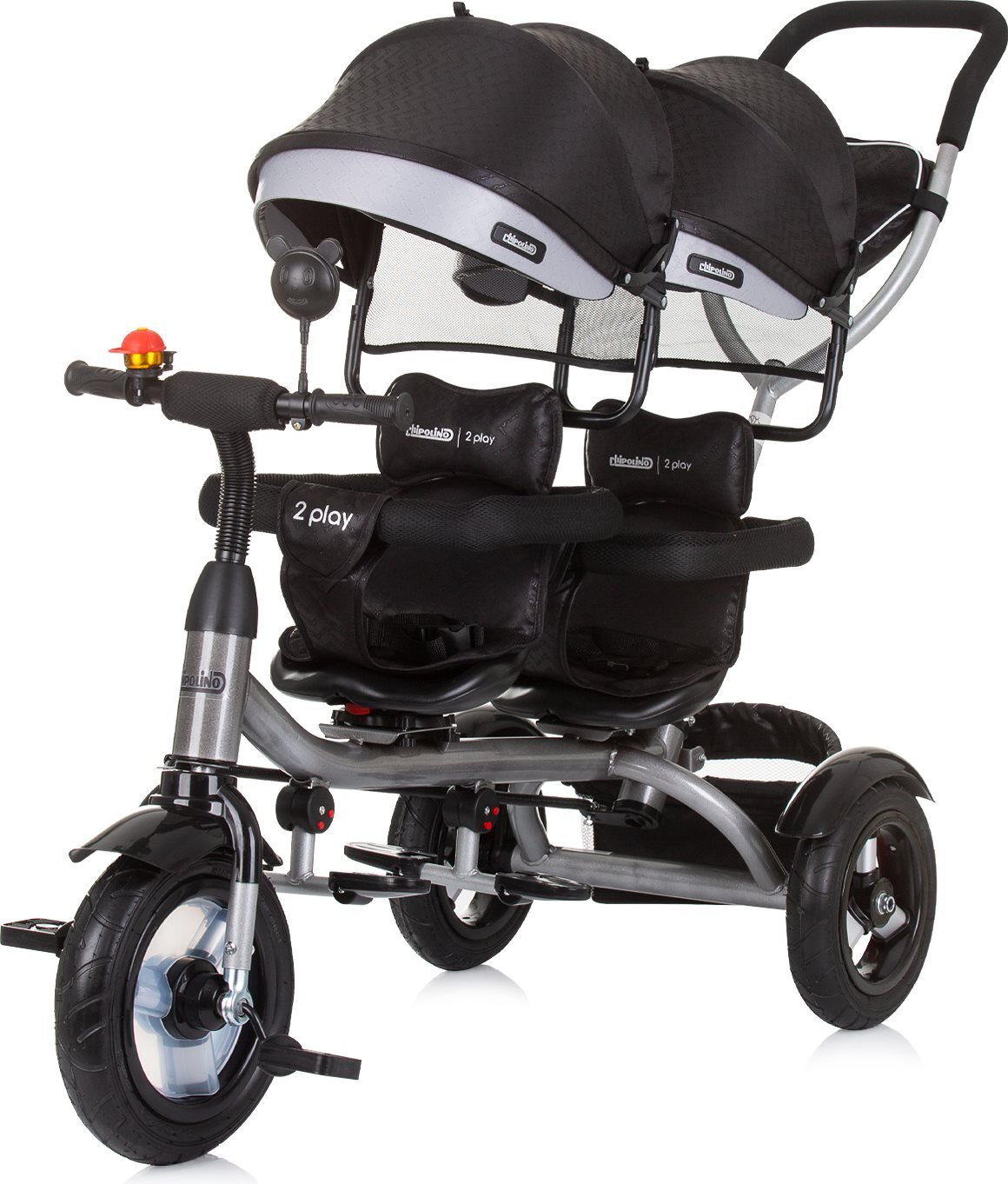 CHIPOLINO Tříkolka pro dvojčata 2Play Obsidian,Silver