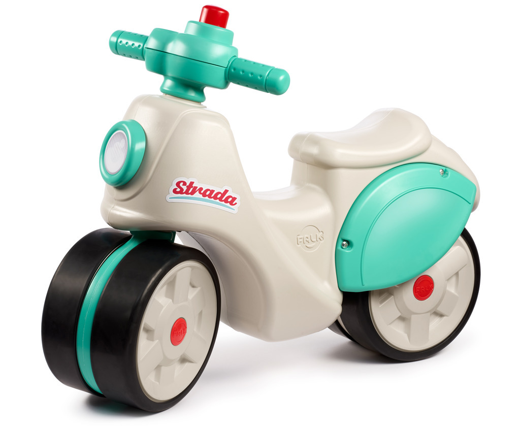 Odrážedlo skútr Strada bílo/modrý s klaksonem a tichými kolečky.Velikost 59×24×48 cm. Věk 1+. Všechna odrážedla jsou testována na30kg – dle požadavků evropských norem. Vyrobeno ve Francii. prečítať celé