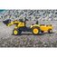 Traktor šlapací Komatsu žlutý s přívěsem, přední lžící a