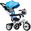 ECOTOYS Tříkolka se střechou a vodící tyčí modrá