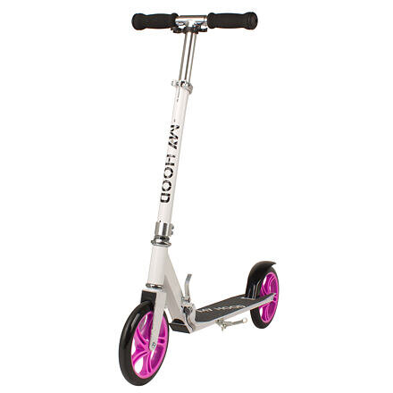 My Hood 200 Skládací koloběžka - bílá / růžováTato opravdu kvalitní klasická koloběžka je opatřena velkými 200mm PU kolečky, která spolu s kuličkovými ložisky ABEC 5 zajišťují pohodlnou jízdu bez námahy. Pevný hliníkový rám se silným lakováním koloběžce zajišťuje dobrou odolnost a to při...