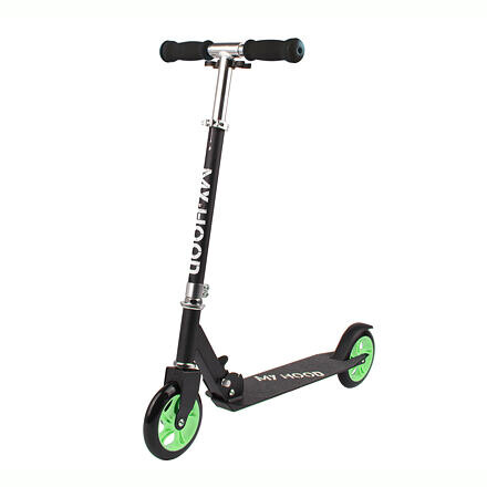 My Hood 145 Skládací koloběžka - černá / zelenáOblíbený model My Hood 200 má menšího bratra. Je stejně kvalitní, ale o něco menší a lehčí, a proto vhodný pro menší děti. Tato opravdu kvalitní klasická koloběžka My Hood 145 je opatřena velkými 145mm PU kolečky, která spolu s kuličkovými ložisky...