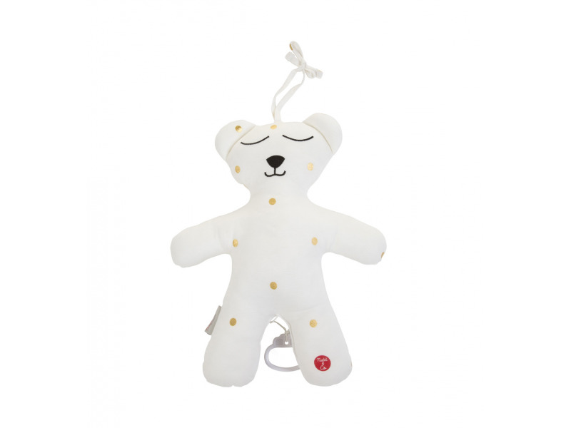 Roztomilý medvídek z jemného bavlněného materiálu hraje po zatažení za šňůrku uklidňující melodii. Ideální společník do postýlky pro snadné usínání.Údržba: Pouze otírejte vlhkým hadříkem.Rozměry: 40 x 25 x 5 cm prečítať celé