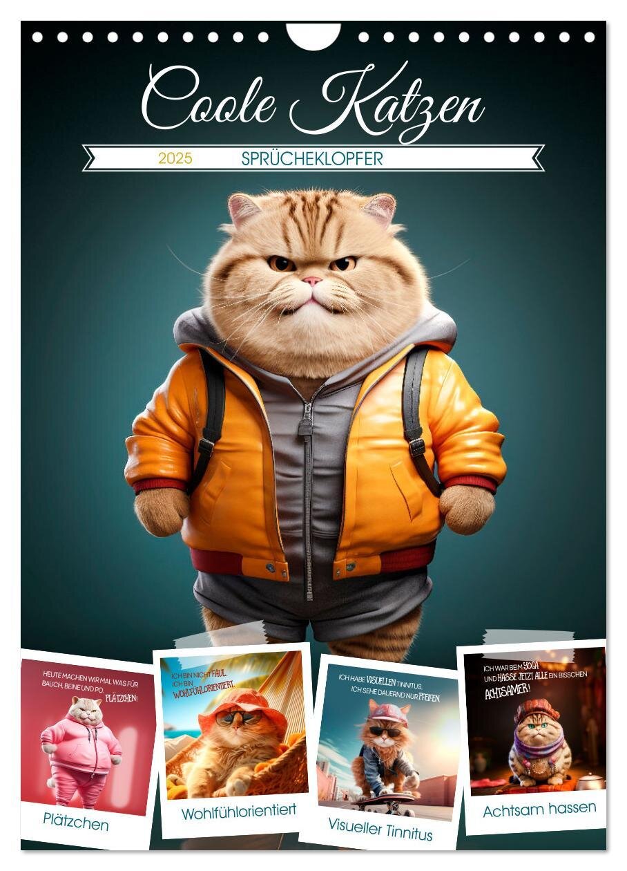 COOLE KATZEN Sprücheklopfer (Wandkalender 2025 DIN A4 hoch), CALVENDO Monatskalender (německy)