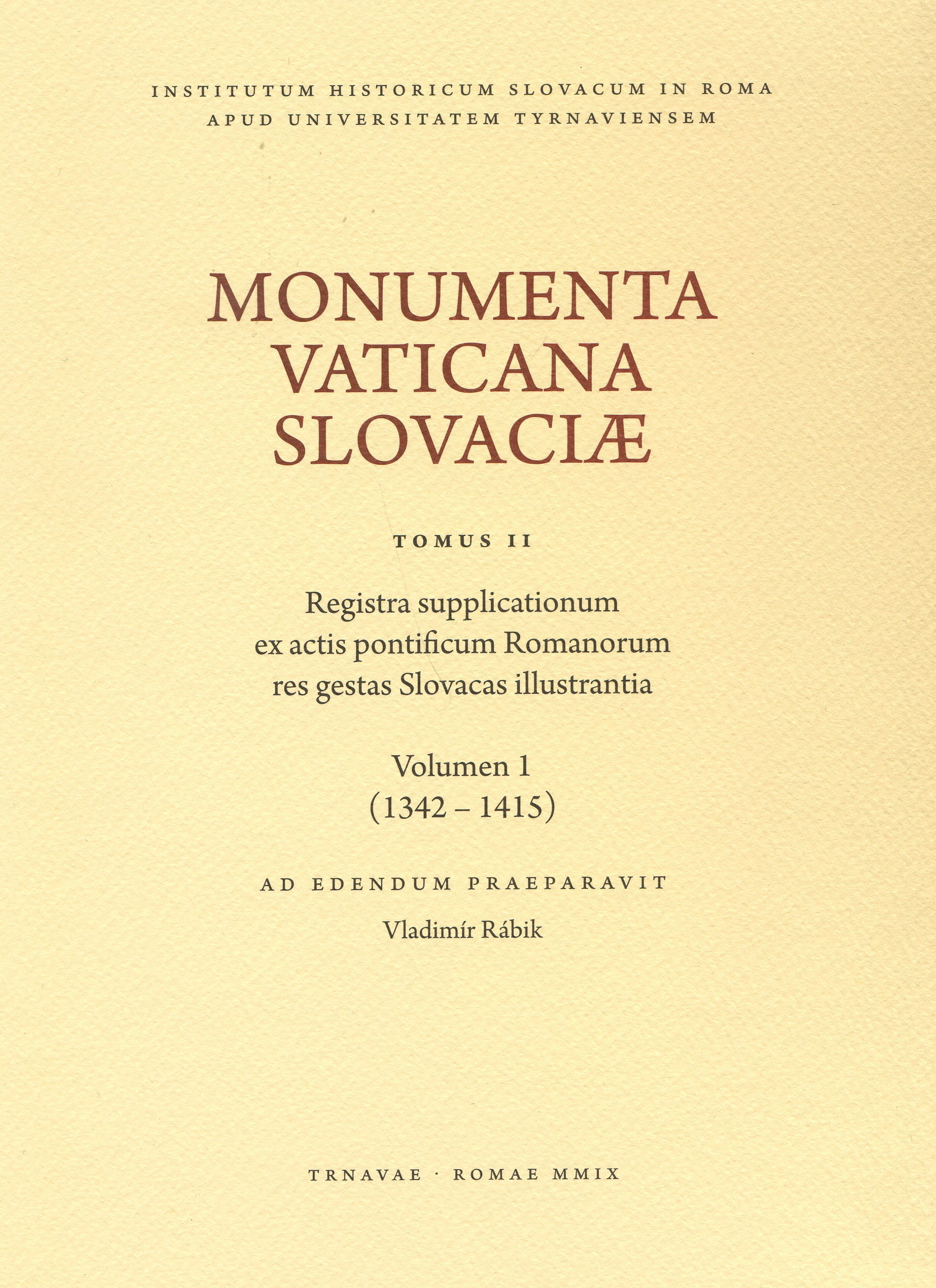Monumenta Vaticana Slovaciae. Registra supplicationum ex actis pontificum Romanorum res gestas Slova
