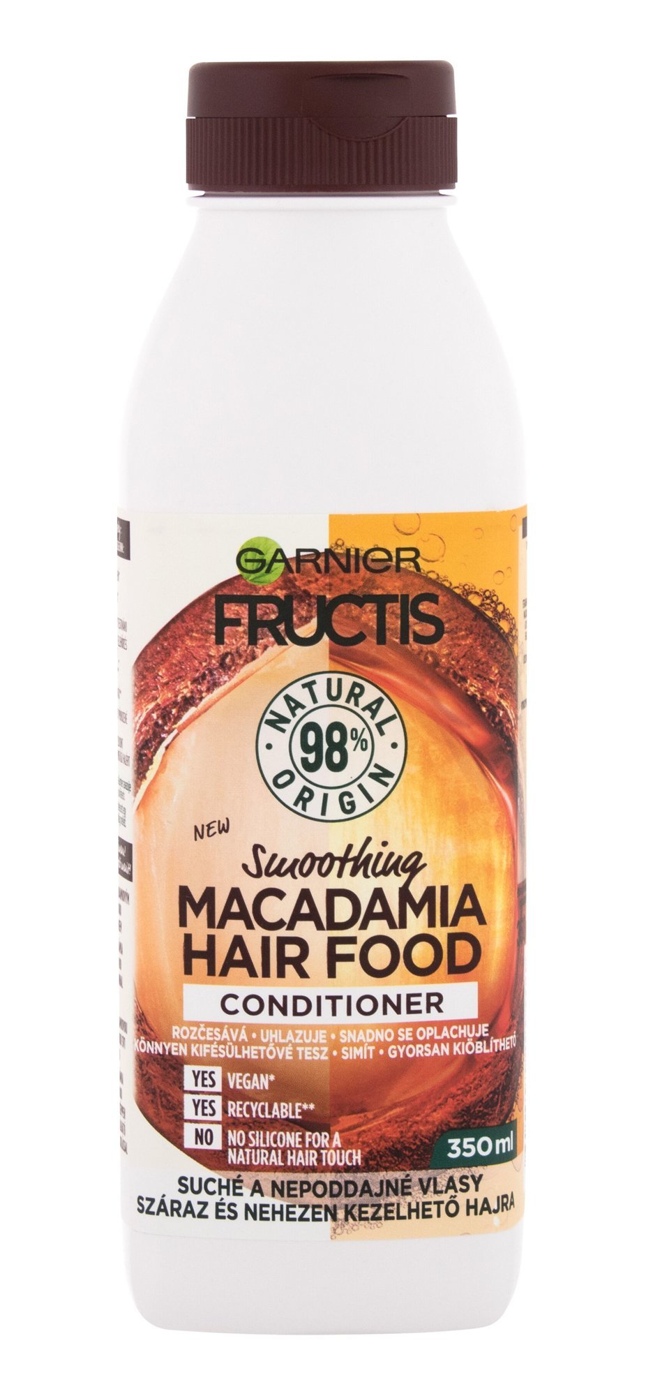 Uhlazující kondicionér Garnier Fructis Macadamia Hair Food Conditioner poskytne vašim suchým a nepoddjaným vlasům přesně tu péči, kterou si zaslouží. Z 98 % je tvořen složkami přírodního původu a je obohacený o makadamiový olej. Navíc je balen do recyklovatelného obalu, takže nezatěžuje naši planetu.