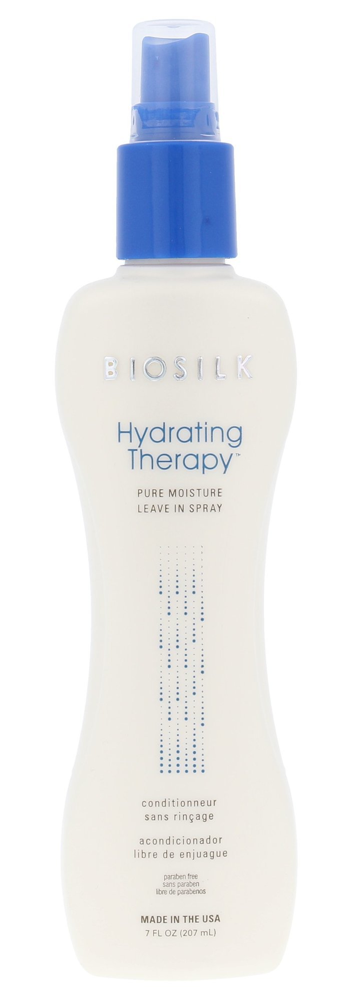 Kondicionér Biosilk Hydrating Therapy Leave In Spray dodává suchým vlasům optimální hydrataci. Zabraňuje ztrátě vlhkosti. Obsažené výtažky z marakuji vlasy vyživují, optimálně hydratují a chární před UV paprsky..