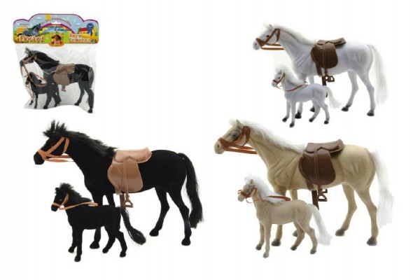 Kůň se sedlem a ohlávkou pro všechny obdivovatele a milovníky koní. Kůň je 13 cm velký, plastový, s povrchovou úpravou fliška. V balení také naleznete hříbátko. Figurky využijete například při hraní na vaší farmě.Vhodné od 3 let. prečítať celé