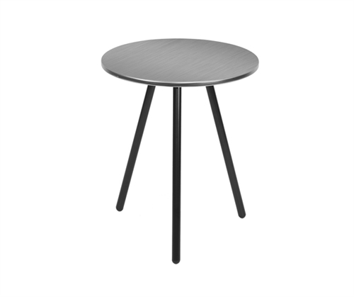 Konferenční boční stolek ve stříbrné barvě s černýma nohama.