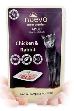 Kočičí kapsa Nuevo Adult kuře a králík je kompletní krmivo pro dospělé kočky všech plemen s kuřecím a králičím masem. Díky vysokému obsahu masa a přírodních surovin a žádnému obsahu umělých přísad, obilí a lepku patří toto krmivo do vysoce kvaliního a i ta nejvybíravější kočička si jej určitě...