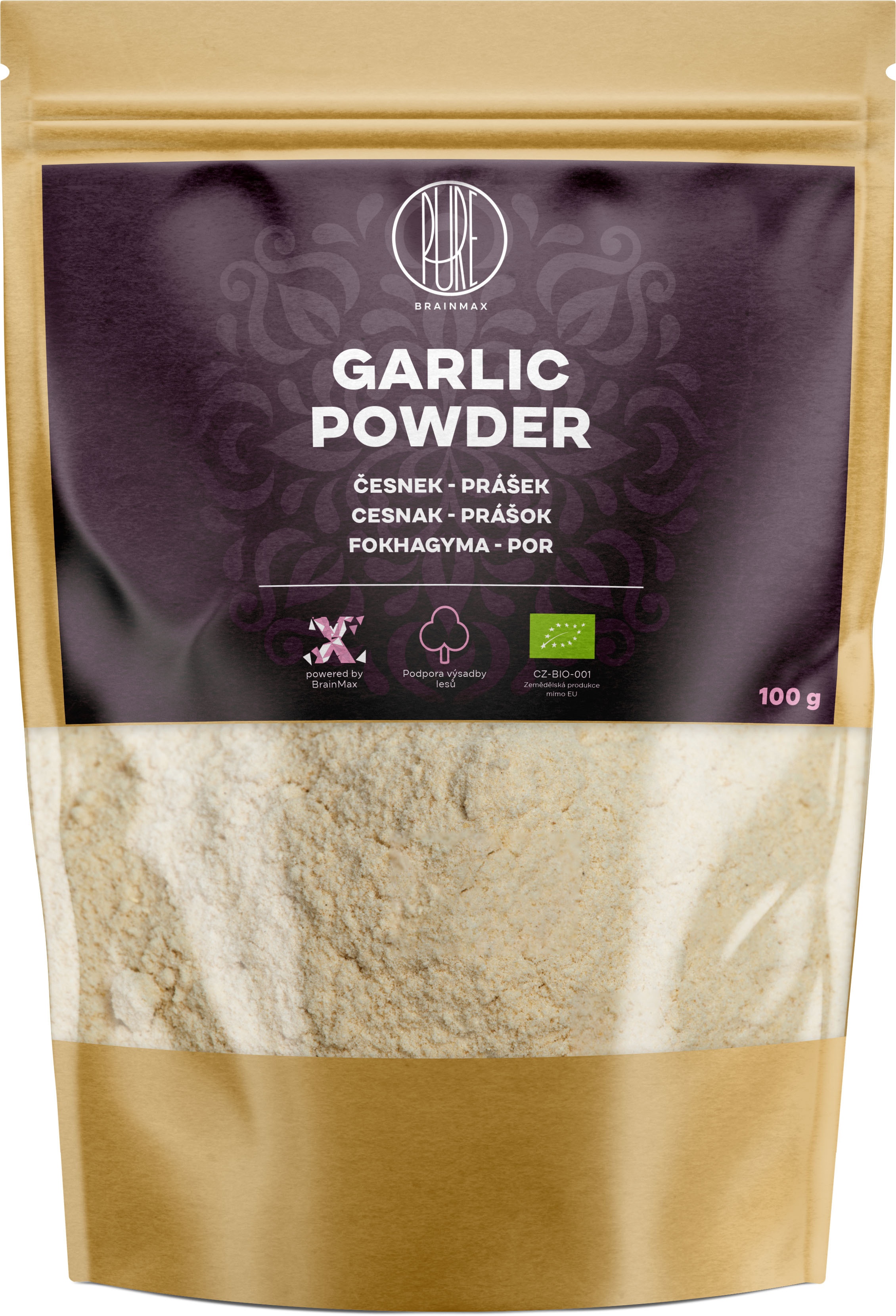BrainMax Pure Česnek BIO prášek, 100 gČesnek je jedním ze základů jídel takřka po celém světě, protože dokáže do velké míry nahradit jiné koření nebo sůl. Kromě použití v kuchyni má mnoho zdravotních přínosů pro náš organismus.Vzácnou látkou, kterou česnek obsahuje je alicin. Sloučeniny...