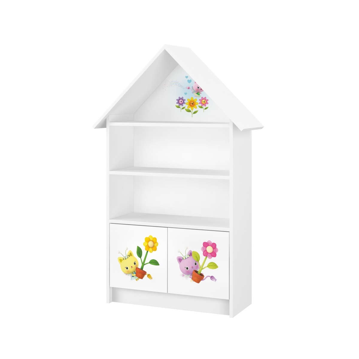 Dřevěná knihovna/skříň na hračky Nellys Domeček, Flowers; bílá; MDF