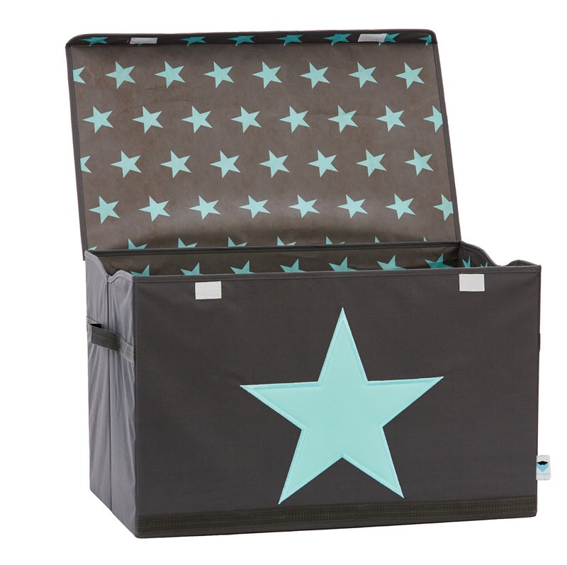 LOVE IT STORE IT - Truhlica na hračky - šedá, mint hviezda - posilnená MDF materiálom