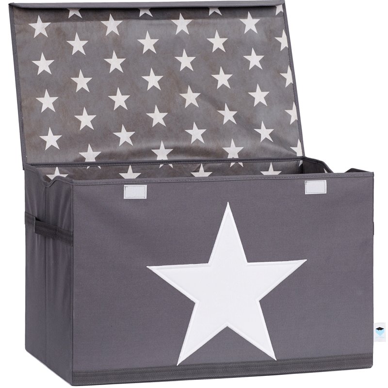 LOVE IT STORE IT - Truhlica na hračky - šedá, biela hviezda - posilnená MDF materiálom
