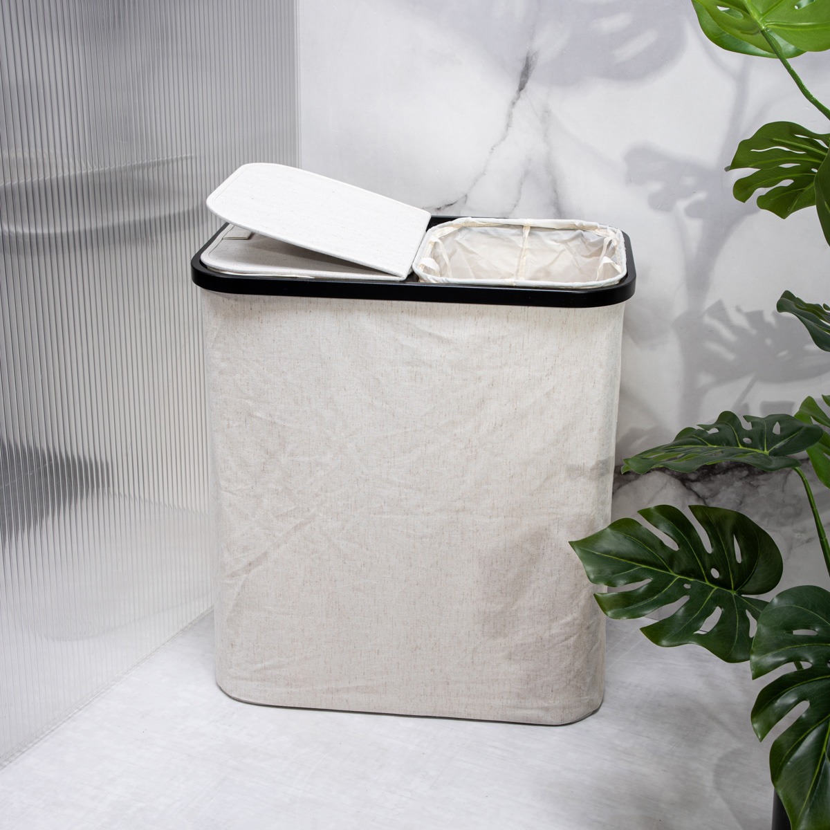 Kosz | DAVEY | na bieliznę z dwoma przegródkami i pokrywą | 55x34,2x60 cm | 734496