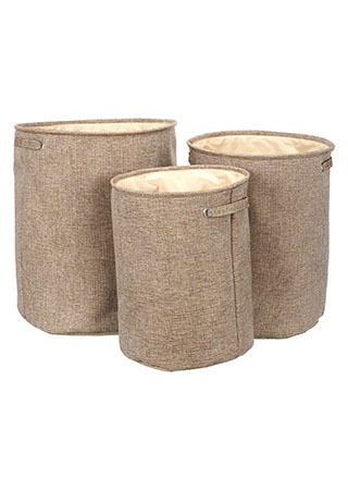 Koš na špinavé prádlo v hnědé látce, Sada 3ks, Polyester.