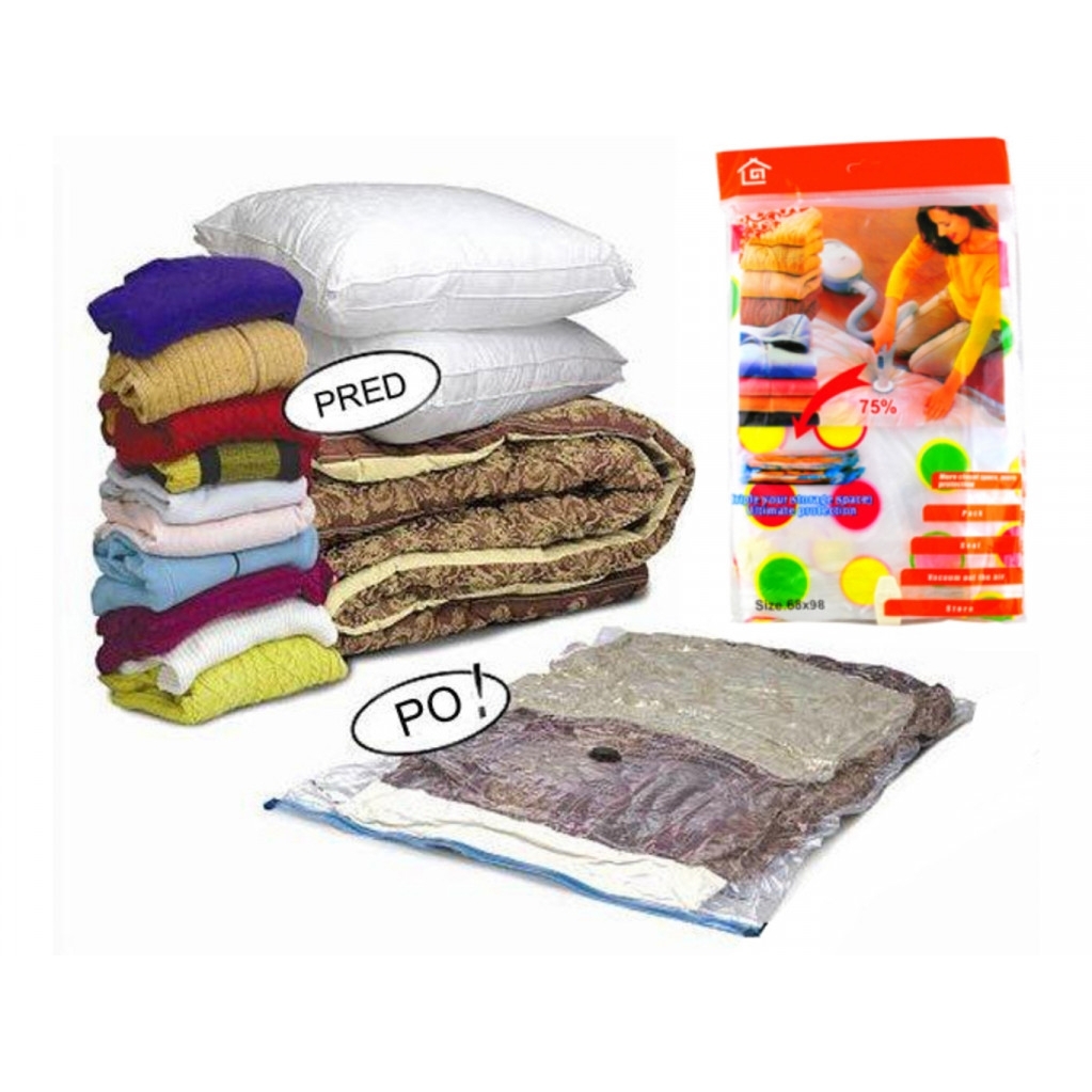 Máte doma hodně oblečení, povlečení, prostěradel či jiných tkanin a potřebujete je uskladnit? Díky vakuovému pytli lehce uskladníte velký objem tkanin na menší prostor. Celá technologie je založena na principu odsátí vzduchu z pytle.Díky tomu se prostor potřebný pro uložení zmenší až o dvě třetiny. Naskytne se Vám tak možnost uložit nepotřebné textilie mnohem efektivněji a přehledněji.