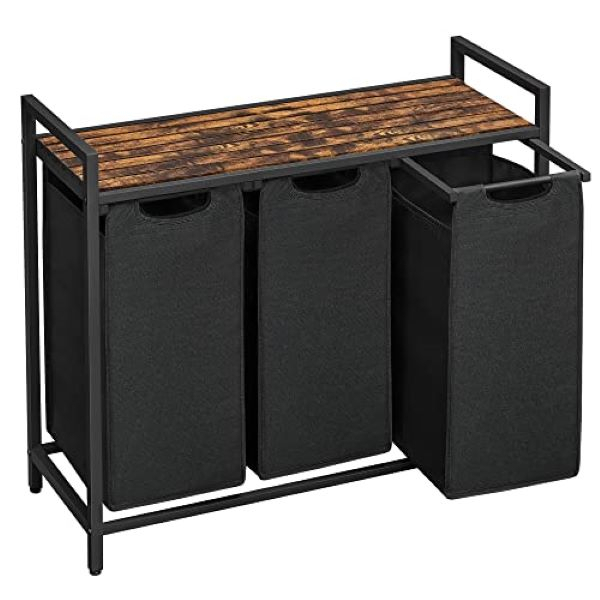 VASAGLE Koš na špinavé prádlo třídící 3 koše, industriální,hnědočerný 92,5x33x72cm